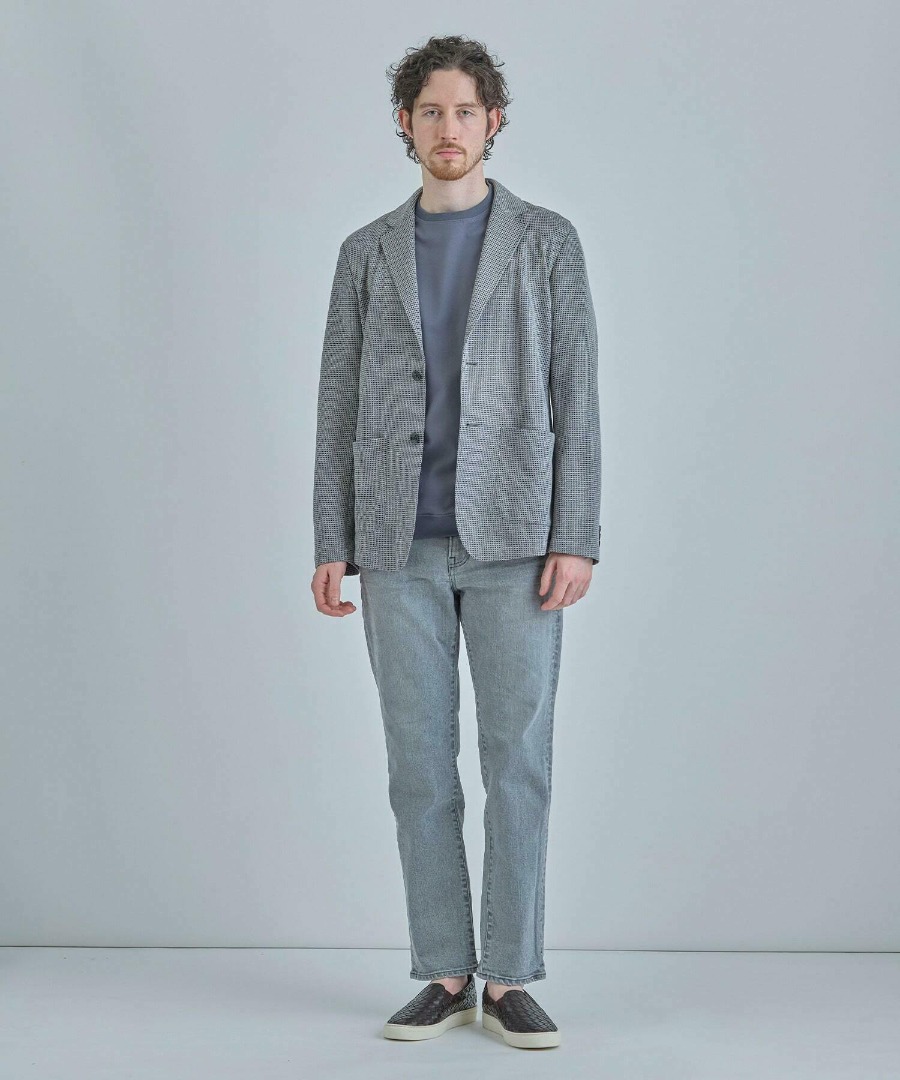 ジャケットからグレーデニムまで、親和性の高いモノトーンカラーで統一した清潔感あふれるコーディネート。