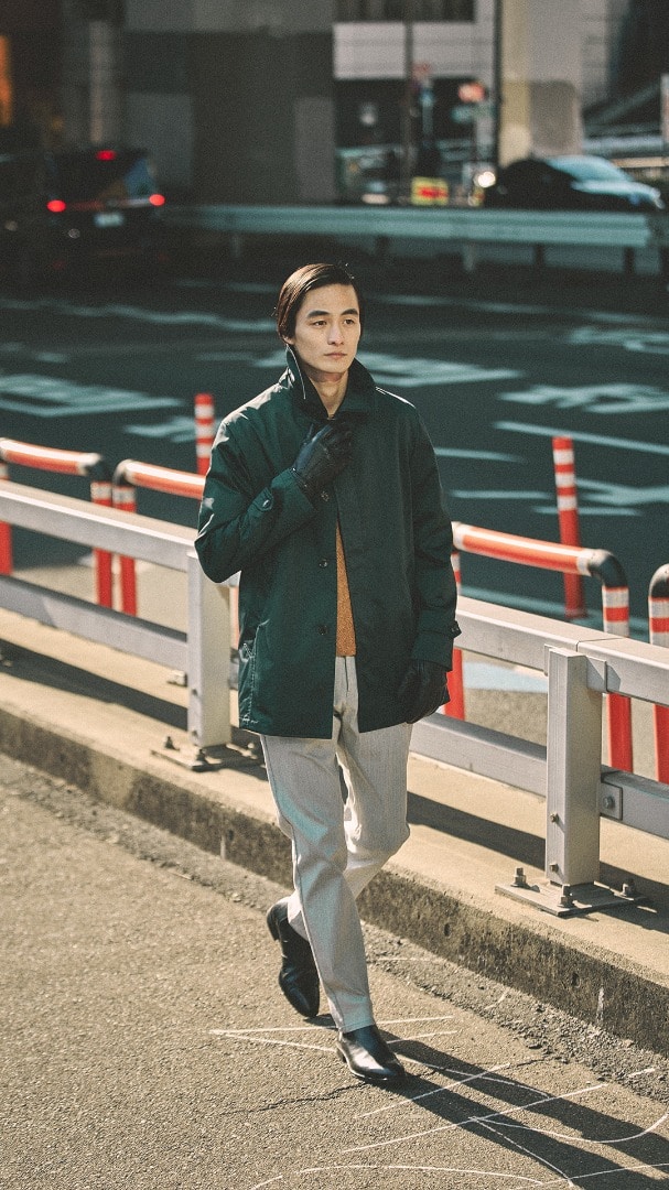 チョコレートブラウンのジャケットが、秋冬の深みを感じさせる。クリームのタートルネックで、優しさをプラス。
