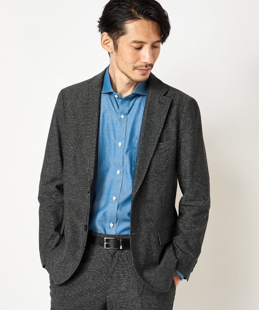 ウエストにダーツを入れているため、細身でスタイリッシュなシルエット。さらに、カッタウェイカラーですので、1枚でサマになる仕上がりです。もちろんジャケットとの相性も抜群。シャンブレー加工の上品なツヤ感が、粋な気遣いを感じられるスタイルが完成します。