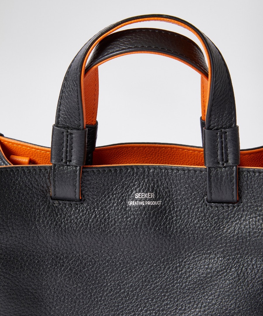 人気のエンボスレザーをベースに、ハンドル裏と開口部にコンビカラーを忍ばせた特別仕様。ブラックの端正な佇まいに、覗かせる色がさりげない個性を演出します。内装ポケットや別注ロゴタグなど実用性と上質感も両立。シンプルながら確かな存在感で、スタイルに洗練されたアクセントを添える一品です。