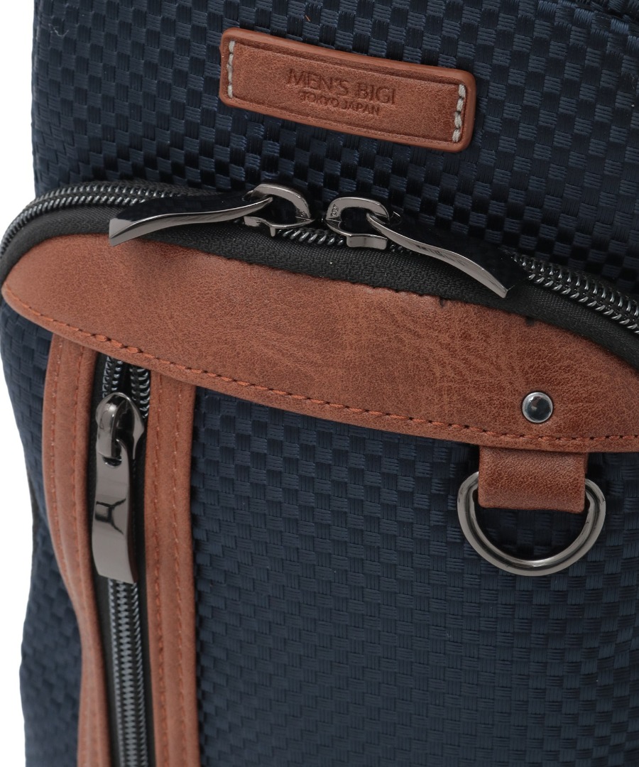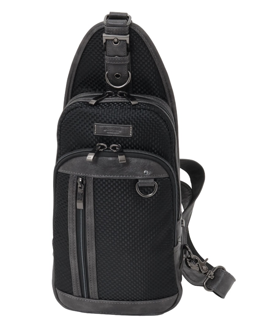 立体感のあるメッシュと、しっとりとした質感のフェイクレザーを組み合わせた、都会的で洗練された佇まい。フラットに身体へフィットする薄型設計に、3層構造の収納やガンメタリック金具など機能と品格を両立しました。街歩きから旅行、自転車移動まで、アクティブな日常をスマートに支える大人仕様のボディバッグです。