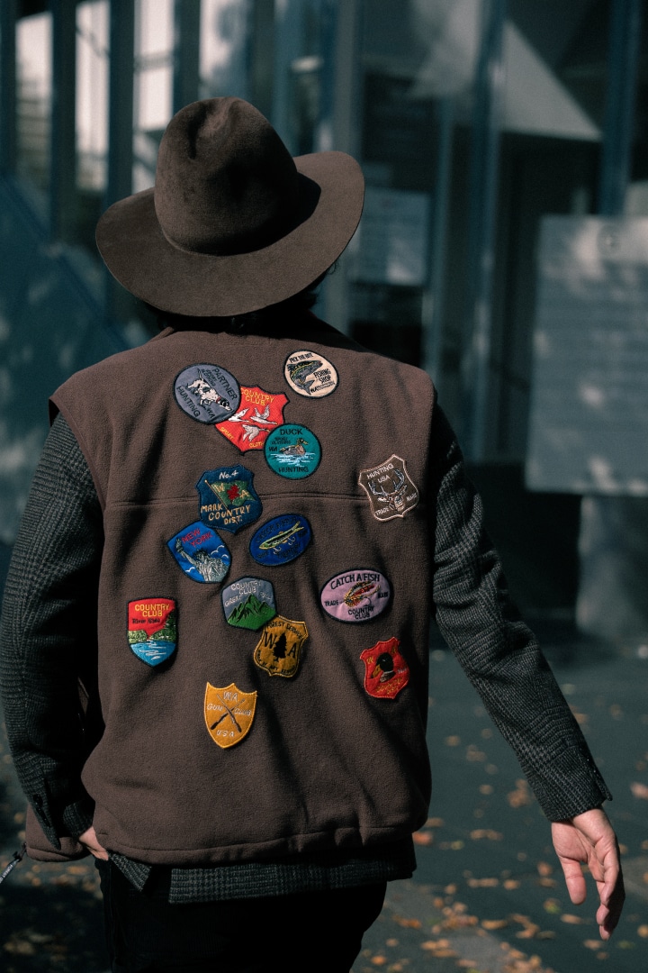 ポイントはやっぱり、このワッペンベストですね。