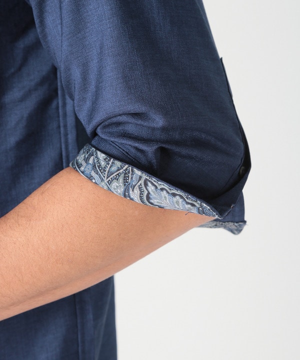 袖裏にはペイズリーがらの別布を使用。ラフにまくってもサマになります。