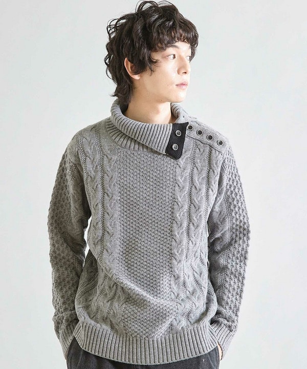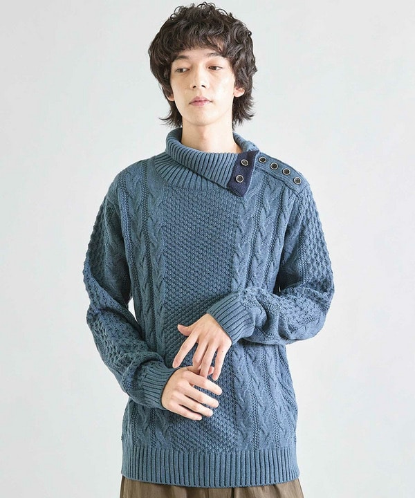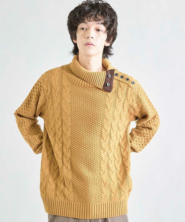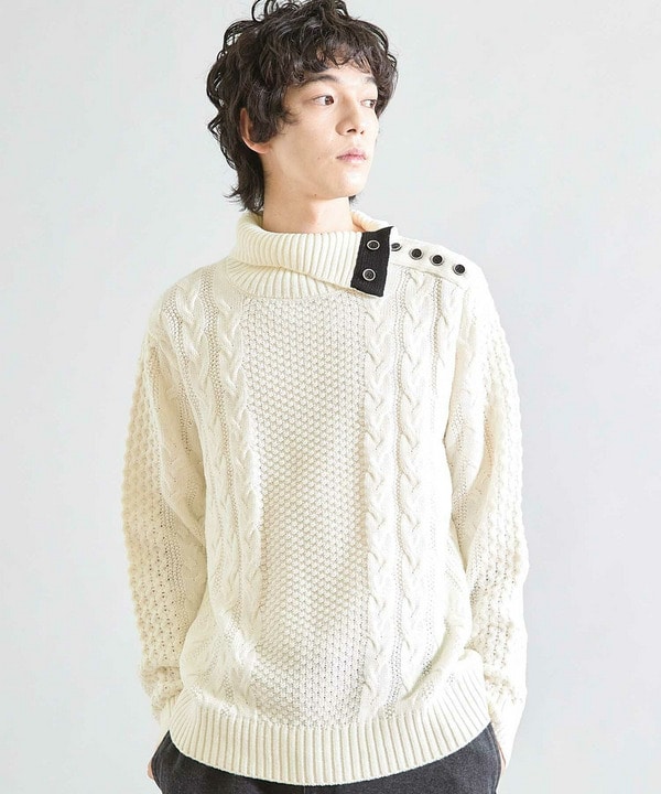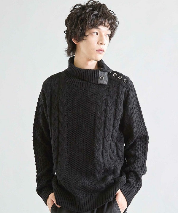 【ウォッシャブル素材】ドクターネックケーブルニット