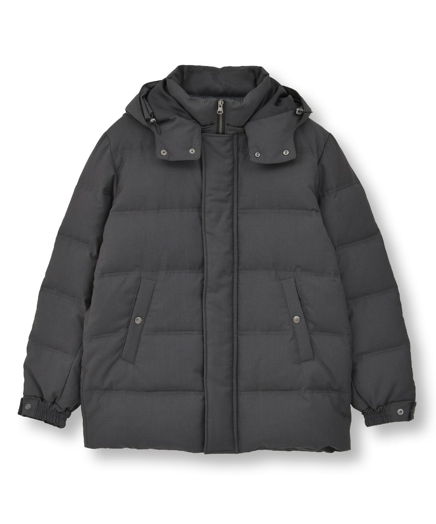 上品な艶とシャンブレーならではの奥行きある表情が、大人の装いに自然と馴染むダウンジャケット。