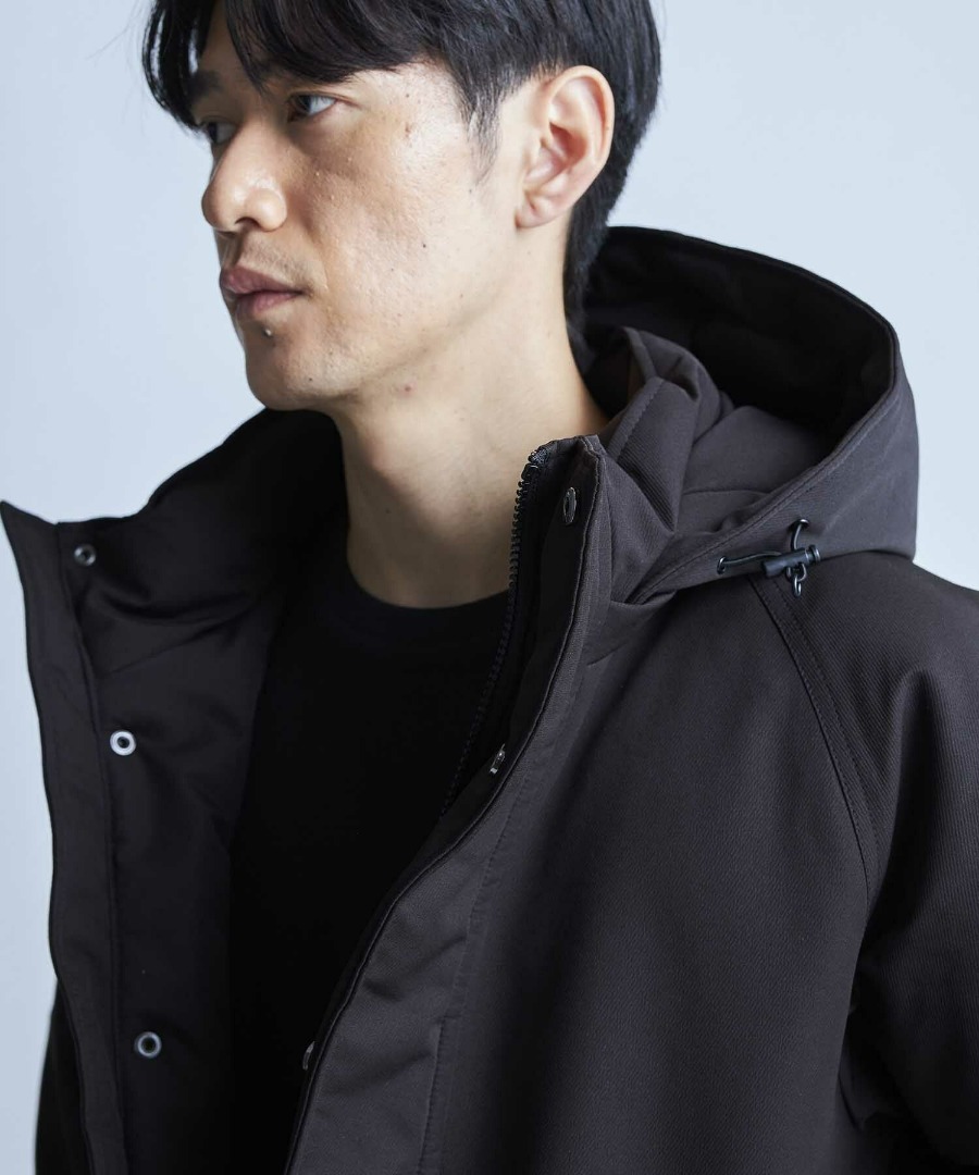 程よい光沢感とタフな機能性を兼ね備えた、冬に頼れる中綿アーミーフーデッドジャケット。