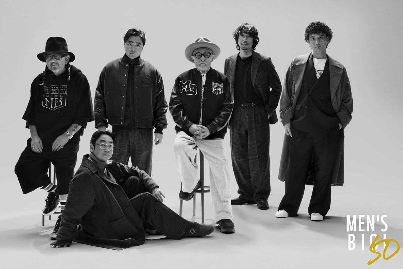 今回の50周年記念ビジュアルには、創業者・菊池武夫氏をはじめ、クリエイティブディレクターの中田慎介氏、俳優の山田孝之氏・安藤政信氏、スタイリストの大久保篤志氏、そしてメンズビギディレクターの鈴木敏之が登場。