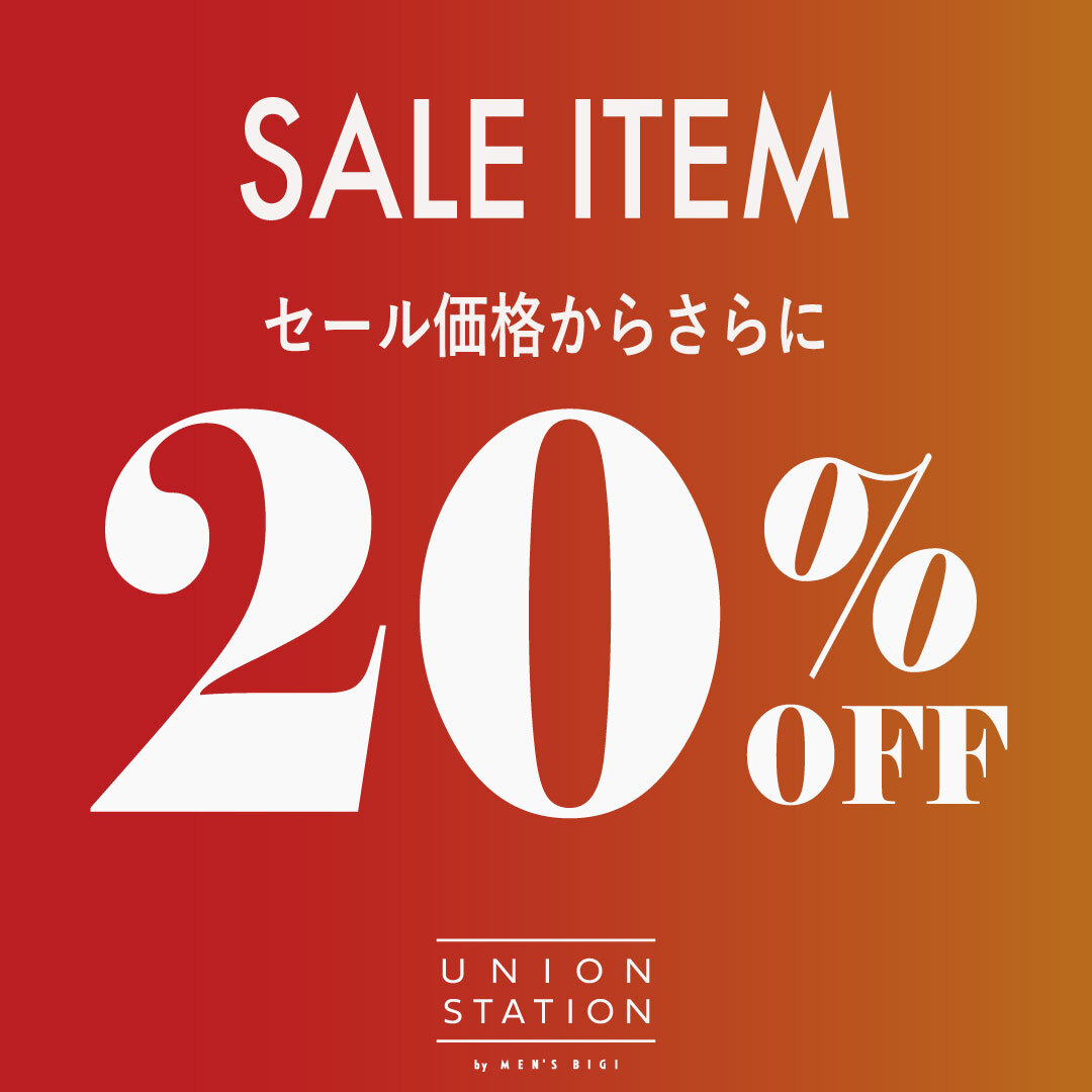2026/01/30 UNION STATION ショップニュース 【UNION STATIO】セール価格からさらに20%OFFフェア開催のお知らせ いつもUNION STATIONをご利用いただき、誠にありがとうございます。 本日より、セール価格からさらに20%OFFとなるフェアを開催いたします。 大変お得なこの機会に、ぜひUNION STATIONでのお買い物をお楽しみください。 【開催日時】 2026年1月30日(金) より【対象店舗】UNION STATION各店UNION STATIONの店舗はこちらから