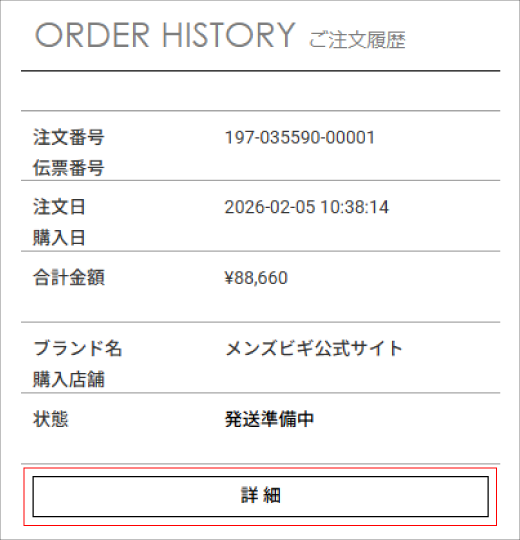 ・マイページのご注文履歴から、レビューを投稿するご注文商品の「詳細」ボタンをクリックします。