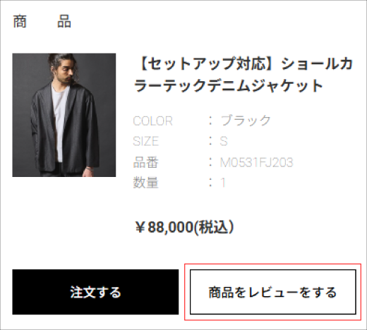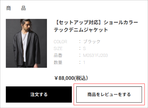 ・「商品をレビューをする」ボタンをクリックします。