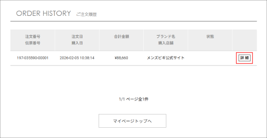 ・マイページ内の「ご注文履歴」をクリックします。